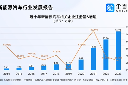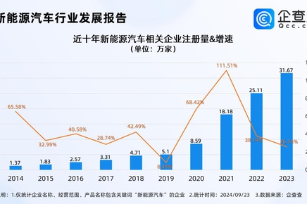 企查查數(shù)據(jù)顯示,國(guó)內(nèi)現(xiàn)存新能源汽車相關(guān)企業(yè)115.02萬(wàn)家。近十年相關(guān)企業(yè)注冊(cè)量持續(xù)增長(zhǎng),2023年全年注冊(cè)31.75萬(wàn)家,同比增長(zhǎng)26.18%。2024 11/13 13:52 -- 來(lái)源: 澎湃新聞