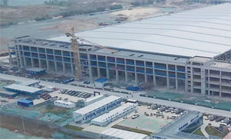 這是超薄電子玻璃生產(chǎn)及深加工項(xiàng)目建設(shè)現(xiàn)場(chǎng)。該項(xiàng)目總投資100億元,占地393畝,由青島融合智能科技有限公司、青島融合新材料科技有限公司共同投資建設(shè)。