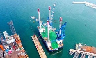 國(guó)內(nèi)最先進(jìn)1200噸自升式海上風(fēng)電安裝平臺(tái)在青島交付