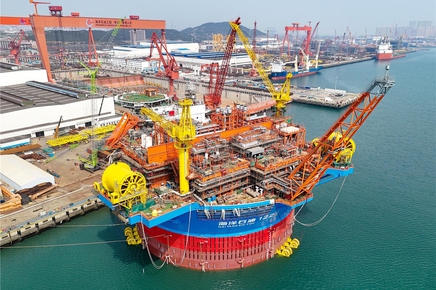亞洲首艘圓筒型“海上油氣加工廠”在青島進(jìn)行傾斜試驗