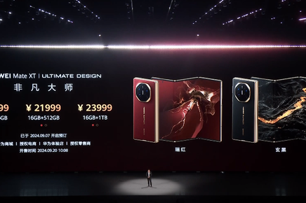 9月10日,華為首款三折疊屏手機——華為 Mate XT非凡大師價格正式公布,其中256GB版本售價19999元、512GB版本售價21999元、1TB版本售價23999元,9月20日10:08正式開售。iPhone 16發(fā)布:售價5999元起 新增相機控制功能