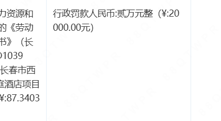 2025年12月24日,該公司因拖欠長春市西安大路823號希爾頓惠庭酒店項目雷文超等39名工人工資87.3403萬元,被長春市朝陽區(qū)人力資源和社會保障局處以罰款2萬元。2026 01/12 17:29 -- 來源: 信網(wǎng)